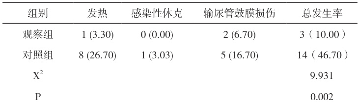 观察组并发症发生率低于对照组( P<0.05 ),见表2。
