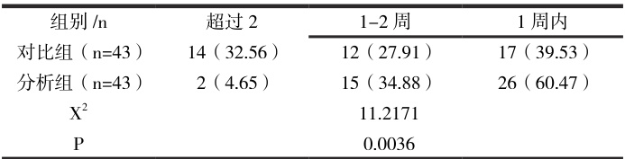 注:1-2 周及超过 2 周的脱落情况对比,差异无统计学意义( ΔP> 0.05)。