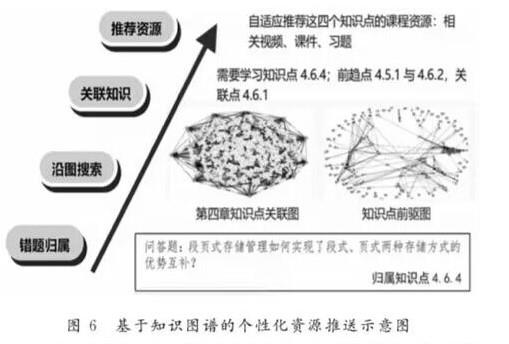 引入知识图谱 , 开展自适应学习模式实践与应用。如图 2 所示 , 构建课程知识图谱 , 结合教育大数据,依照“习题归属知识点图谱关联与前趋知识 - 相应资源推荐学习路径规划”,构建自适应学习模式 , 在教育实践中赋能课程教学。在新模式的支持下 , 提供具有泛化能力的新型智慧教学思路 , 依托算法设计在线评测系统等平台开展智慧教学应用与实践。