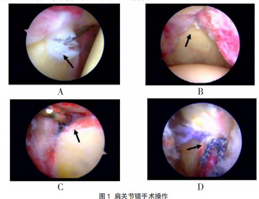 医学研究认为,肩关节盂唇的功能与半月板较为相似,因肩胛盂相对平坦,此时就会发挥出盂唇的缓冲功能,盂唇会以加深关节窝的方式,增加肩胛盂和肱骨头的吻合程度,由此在关节活动时,就会避免关节软组织碰撞,提升肩关节稳定性,其成分主要是弹性纤维软骨。通常在肩关节盂唇损伤后,会表现为肩关节疼痛症状,并发关节内弹响,或出现上肢沉坠感等[4]。因盂唇功能较为特殊,损伤后会影响到邻近组织,所以急需接受手术修复治疗。肩袖是由冈上肌、冈下肌、小圆肌及肩胛下肌的肌腱所组成的复合体,它们共同附着于肱骨大结节和解剖颈的边缘,对肩关节的稳定性和运动功能起着至关重要的作用 [5]。肩关节盂唇则是肩关节盂边缘的纤维软骨环,能够加深关节窝,增强肩关节的稳定性。当肩部受到外伤或长期劳损时,可能导致肩袖撕裂和肩关节盂唇损伤同时发生 。该研究所选患者为肩袖撕裂并发肩关节盂唇损伤,该类损伤机制在于:(1)原发性肩关节损伤引发盂唇撞击后撕裂。(2)压迫机制,在轻度屈曲上肢或伸展上肢时,患者跌倒撑地,导致盂唇受压迫应力,引发肩关节撕裂[7] ;(3)牵拉机制。患者上肢急速被牵拉,比如,投掷时,上皮突然减速,此时的肱二头肌会对盂唇产生牵拉作用,最终引发盂唇撕裂。(4)慢性劳损。长期进行肩部重复运动或过度使用肩部,如从事投掷、游泳等运动,可能使肩袖和盂唇逐渐磨损,最终发生撕裂。肩袖撕裂和肩关节盂唇损伤均会导致肩部疼痛,尤其在夜间和活动时更为明显[8]。疼痛可能从肩部放射至颈部或肩背部。肩部外展、上举、后伸等动作可能受限,且不能对抗阻力。患者在进行这些动作时会出现明显的疼痛。此外,肩部肌肉可能因损伤而无力,导致患者在日常活动中感到困难,因此,需要及时修复肩袖撕裂并发肩关节盂唇损伤病症 [9]。