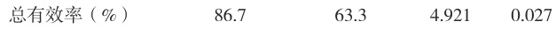 2.2 两组治疗后疗效指标比较观察组总有效率 (86.7% )显著高于对照组 (63.3% ) (P<0.05) );中医主证积分(尿不尽、排尿困难、腰膝酸软)改善幅度观察组为( 4.2±1.1; )分,显著优于对照组的( 2.8±0.9Ω) 分 (P<0.001) 见表2。