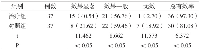 护理结束后,治疗组听力恢复情况更佳,经 t 检验, P<0.05 ,详 见表1。