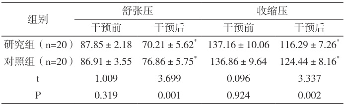 血压比较,2 组均降低,且研究组降低明显( P<0.05 ),见表1。