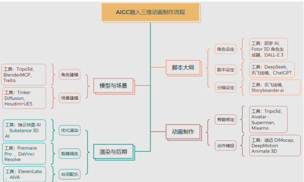 三、主流AIGC 工具在三维动画设计各环节的适配方法