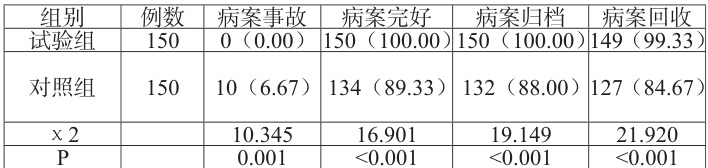 对照组:常规病案管理,以病案室标准和规范为依据开展病案的保存、整理和归类工作。