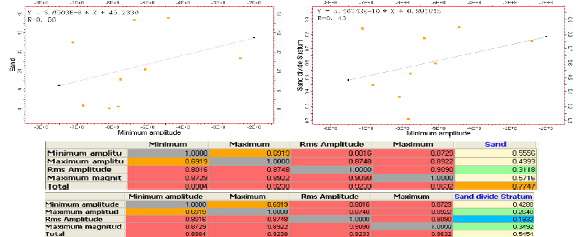 L1Ⅲ油组储层砂地比与最大能量属性相关性好(图 3),其中砂地比与最大能量振幅相关系数可达0.84,能量属性图上颜色越红(能量越强),其含砂率就越大。