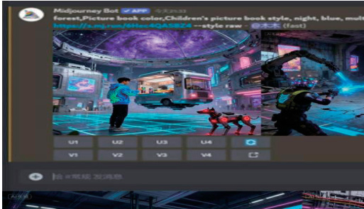 设计基础课始于理论,如色彩、构成、形式美法则等。AI 可以让学生从“被动听讲”变为“主动探索”。比如:AI 的动态演示与生成功能,可以让学生用文本描述,AI 图像工具(如 Midjourney,Stable Diff usion)能即时生成大量视觉范例,如下图 1。学生可以直观地比较不同参数下的效果,深刻理解理论是如何被应用的。再者,AI 的无限案例库可以让教师根据指令让 AI 生成特定风格、流派或大师手法的大量案例,无需费力搜集。最后,AI 还可以让学生进行个性化学习,当学生对某个概念不理解时,可以要求 AI 用不同的方式进行解释,直到弄懂为止。