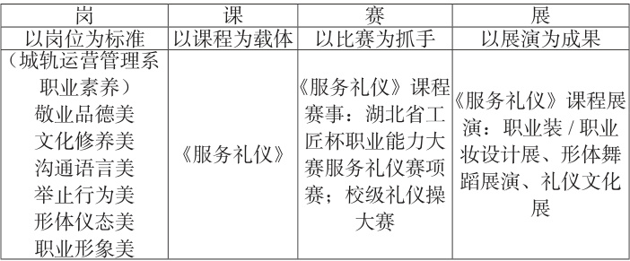 表1 《服务礼仪》课程美育的“岗课赛展”模型