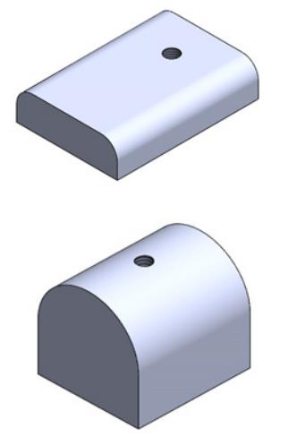 针对此问题,项目组经过多次观察和分析,并针对实物进行现场测量,创新性提出新的连接固定方式,能较好的提高拆装效率。具体措施是利用模盒非工作面内腔的空间形状,加工八对异形螺母,分别镶嵌于模盒非工作面内腔上下部位,拆卸安装三号轮转轮时,直接用M4x12 的内六角螺钉由外向内穿入并将两相邻模框的钢片和转轮锁紧。这种安装方式即方便又高效。异形螺母、垫片如下图所示: