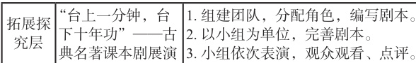 表1:读古典名著,品百味人生——五下语文第二单元作业设计