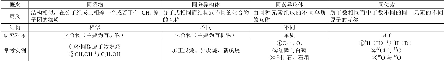 (3)在讲解概念辨析时,可以利用课件展示出概念之间的异同点,让学生通过对比分析的方式强化对知识点的理解。再利用希沃白板中的课堂活动来设置竞争游戏,在游戏中加强概念的辨析,学生在头脑中会留下深刻的印象,同时也会使课堂气氛更加活跃,让一堂枯燥的概念课变得妙趣横生。如分离提纯方法的选择,“四同”(同分异构体、同系物、同位素、同素异形体)的对比,都可以用课件做成对比表格的形式给学生,然后将这些概念的常考题输入到希沃白板的课堂游戏中,请两位同学上台竞争,看看相同时间内谁答对的多,同时电脑中会有相应的奖惩音效,增加了游戏的趣味性。下面例举了“四同”的对比表格。