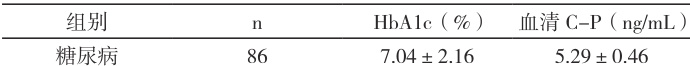 检验指标:根据诊断结果比较糖尿病、非糖尿病受检者血清HbA1c 指标、C-P 指标