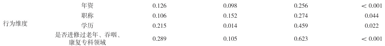 3.4.4 进修过老年、吞咽、康复专科领域知识对护士老年性吞咽障碍知信行的影响