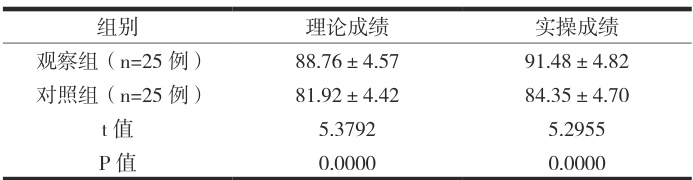 2024.1-2024.12,择取参与胃肠外科带教的 50 例实习医生进行研究,经抛币法分组,是对照组(25 例)、观察组(25 例)。对照组:男16 例、女 9 例,年龄 24-30 岁( 27.45±0.62 )岁。观察组:男 14 例、女 11 例,年龄 24-30 岁( 27.03±0.55 )岁。对比两组实习医生资料,无差异( P>0.05 )。
