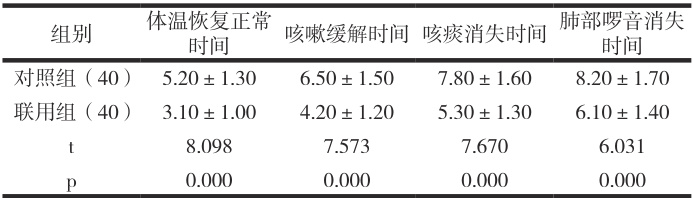 症状改善时间:记录两组患者体温恢复正常的时长、咳嗽减轻的时间、咳痰停止的时间以及肺部啰音消失的时长。