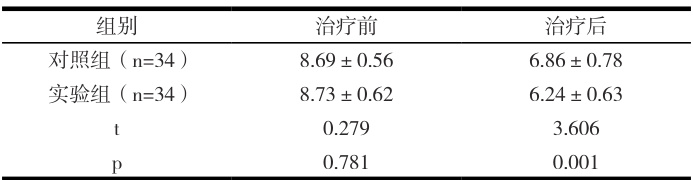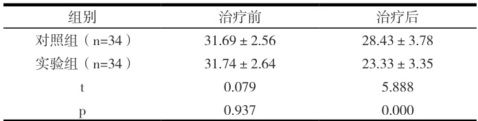 2.3 两组患者体重指数比较经治疗,实验组患者的体重指数得到有效控制,低于对照组(P<0.05)。