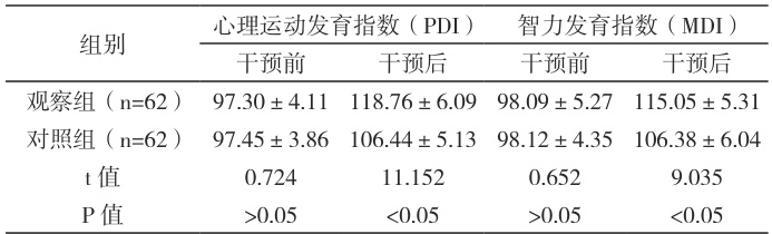 综上所述,儿童保健干预可有效促进婴幼儿早期生长发育,提升其运动和智力发育水平。
