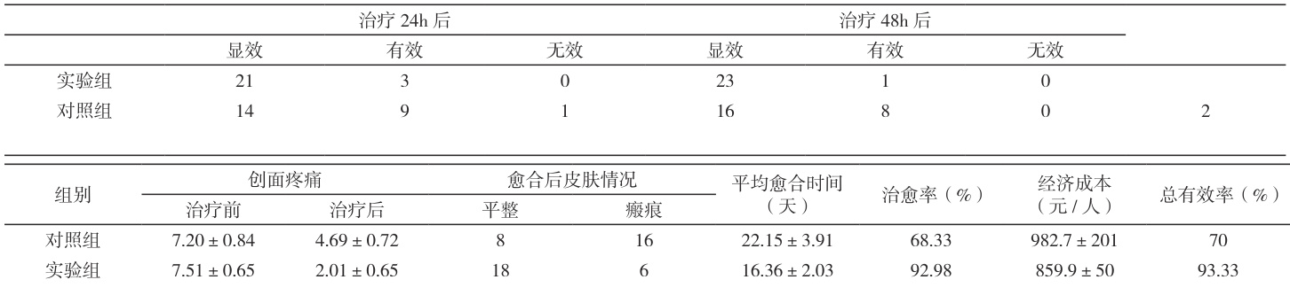 结论 联合疗法具有治疗伤口愈合快,痛苦小,花销少,不良反应较少等优势,可在临床推广使用。