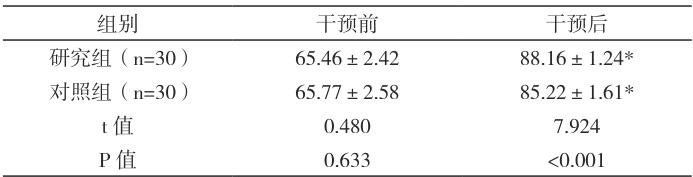 注:* 表示组内指标干预前后对比差异相对明显, P<0.05 。