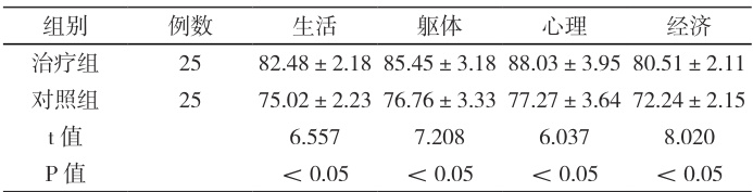 表2 治疗组与对照组治疗后生活质量评估对比(