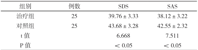 护理后,治疗组焦虑、抑郁情绪更低,经统计学检验, P<0.05 ,详见表2。