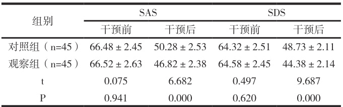 干预后,观察组低于对照组, P<0.05 ,见表 1。