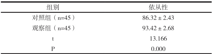 表2 依从性对比(分)