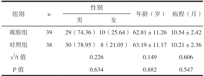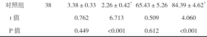)表示,两组间进行独立样本t 检验,同组内干预前后行配对资料t 检验;计数资料用百分比 (%) 表示,进行 x2 检验。以 P<0.05 表示差异有统计学意义。