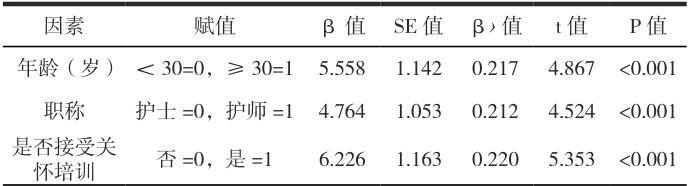 表3 手术室护理人员人文关怀能力影响因素多元线性回归分析