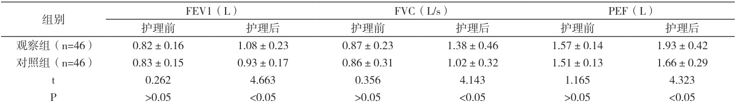 观察组肺功能优于对照组( P<0.05 )。见表2 :