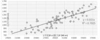 在构建推力与扭矩的经验公式时,要清楚刀盘前方地层的地质情况。本项目主要讨论澳门地区土压平衡盾构(本项目刀盘半径为3.64m)在穿越粉质粘土层时,推力与扭矩的关系。我们选取粉质粘土层的掘进参数,并通过线性回归法得出推力和扭矩在澳门地区粉质粘土层的关系为: