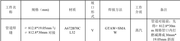 云南大唐国际红河发电有限责任公司2017 年9 月2#机组检修,委托我公司对其部分管道焊缝进行衍射时差法(TOFD)超声检测;其中一个焊道规格为∅ 812.8*19.05mm 与∅ 812.8*30mm 对接,管道工件结构见图 1 照片,工件参数见表1;