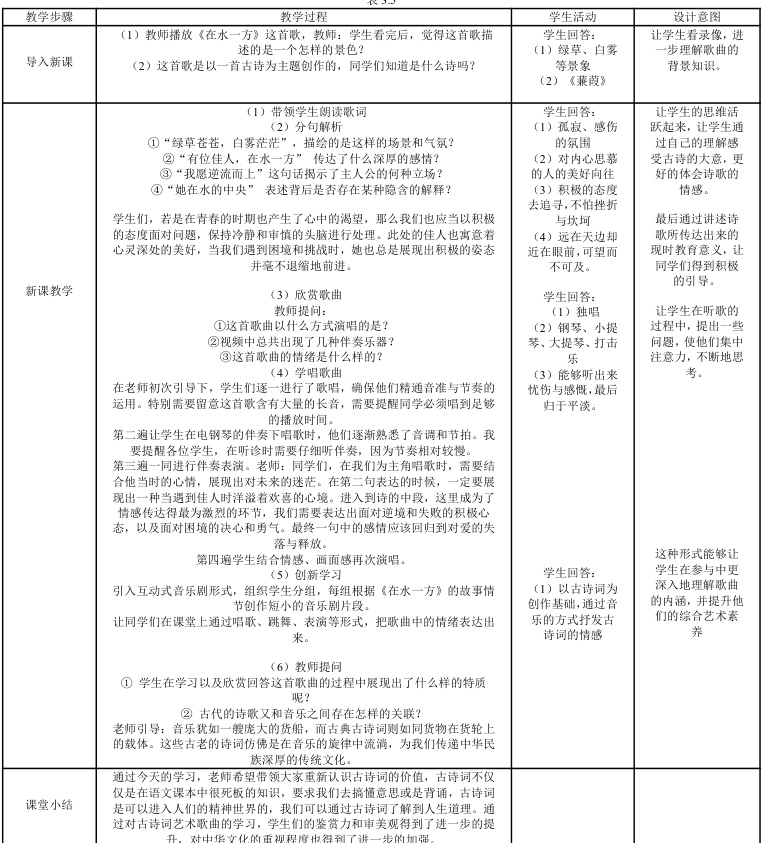 古诗词艺术歌曲《在水一方》在中小学音乐课堂的教学实践