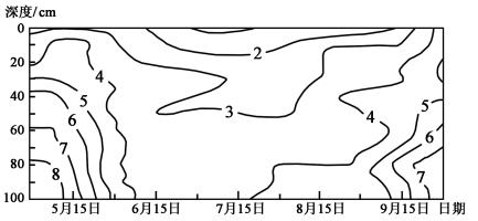 真题呈现:(2016 年海南卷)下图示意一固定沙丘某年 s~9 月土壤水分含量
