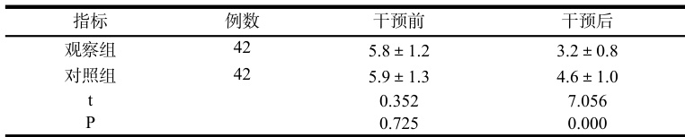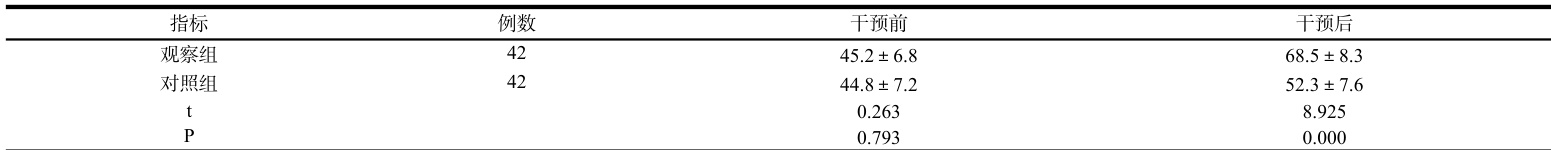 表 2 两组患者干预前后 RA-SES 评分比较(