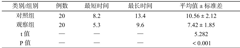 表 2:两组首次自主排尿时间比较(小时)
