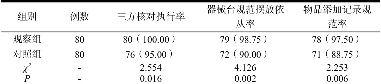 观察组清点制度执行依从率显著高于对照组( P<0.05)