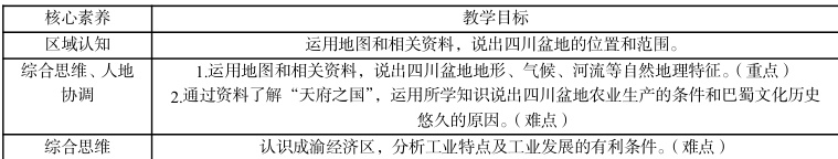 《四川盆地》是粤教版教材八年级下册第七章第三节内容,在这节课之前,学生已经学习了中国地形、区域分析等知识,有一定的读图识图能力、信息获取能力、地理事物描述等能力。但是,对于区域自然环境和人文地理的理解还停留在感性层面,分析区域文化与当地环境之间关系的能力有待提高。那么,如何利用已有的基础来弥补学生的差距,凸显教材蕴含的人与自然的关系?鉴于此,笔者确定以下教学目标。