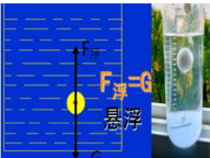 下沉时,浮力小于重力(如图 3);悬浮和漂浮时,浮力等于重力(如图4)。