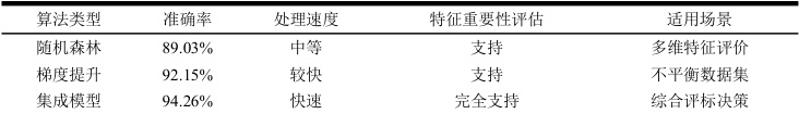 随机森林算法通过构建多个决策树集成模型实现对建筑工程投标方案的智能评价,该算法具备可变重要性度量与包外误差估算等优秀特性,能够有效处理评标过程中的高维特征数据。梯度提升算法采用XGBoost 框架构建投标质量预测模型,通过序列化训练弱学习器逐步优化预测精度,在处理不平衡数据集时表现出色。特征工程过程从企业资质等级与技术方案完整性及历史项目业绩等维度提取关键特征变量,构建包含150 个特征维度的综合评价向量。集成学习策略结合随机森林与梯度提升算法的预测结果,通过加权投票机制生成最终评标分数,算法优化采用网格搜索与交叉验证相结合的超参数调优方法,确保模型在实际工程项目中的泛化能力(见表2)。