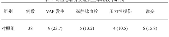 记录两组患者呼吸机相关性肺炎、深静脉血栓、压力性损伤、谵妄等常见并发症的发生情况。