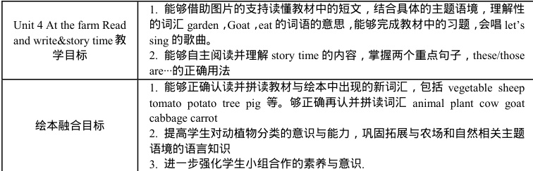 教学目标是统领整个课堂教学的宏观导向,科学的目标不但能够帮助教师更好地明确课堂教学的核心内容,更好地梳理课堂的教学流程,检测学生是否达到预设的学习成效,还能够进一步提高课堂教学活动设计的导向性,聚焦于学生核心素养和能力的发展。因此,依托分级绘本为学生设计阅读活动时,教师就必须立足于主教材的教学目标,整合绘本的教学内容来为学生设计细化的活动目标。