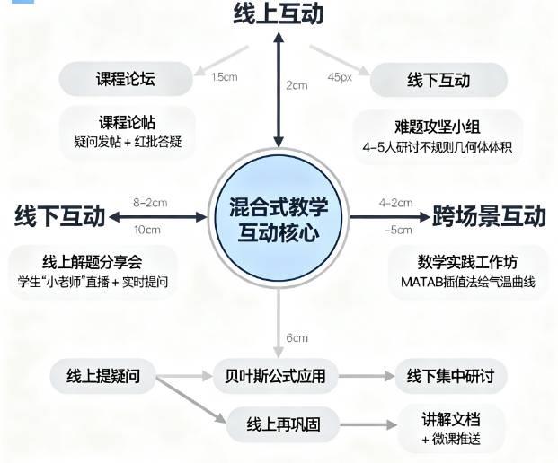 跨场景互动会构建“疑问解决-巩固强化”的闭环。学生在线上平台提交的复杂问题,比如“概率论中贝叶斯公式在医学诊断中的具体应用”,老师会先整理这些问题,在下次线下课堂集中研讨——先让学生分组讨论“为什么要用贝叶斯公式计算患病概率”,再由老师结合具体案例讲解公式的应用逻辑。研讨结束后,老师会把课堂上的讲解重点、学生的优秀讨论成果整理成文档,配上相关的微课视频,上传到线上平台,推送给参与讨论的学生,让他们课后可以再次回顾。比如有学生没完全理解“先验概率与后验概率的区别”,就能通过线上资料进一步学习,还能在平台上继续提问,形成“线上提疑问-线下解难题-线上再巩固”的完整互动链条。