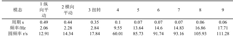 模态分析法也被称为振型叠加法动力分析,模态分析提供了结构的基本性能参数。对基座进行模态分析。根据有效质量参与系数以及对应的振型图确定基座的基本频率和模态数如表1 所示: