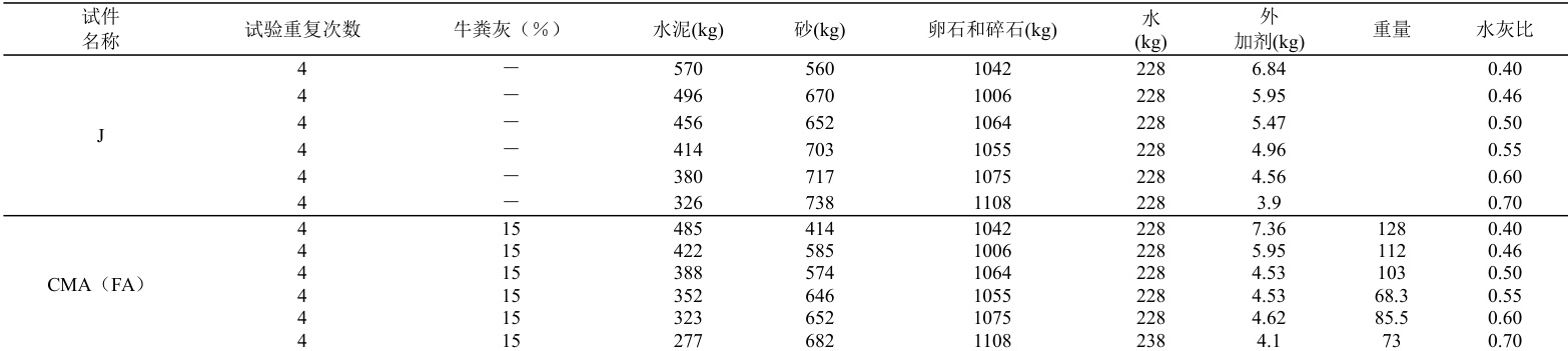 表2-1 CMA 混凝土立方体抗压强度试验配合比