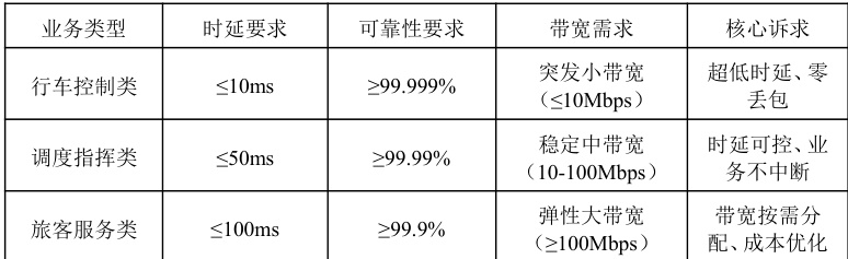 铁路 5G业务的差异化需求对传输网络提出多维度要求,具体如下表所示: