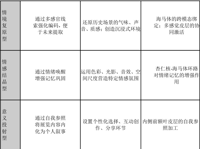 基于多感官展览的构建逻辑与神经科学基础深入剖析其影响观众记忆建构的具体机制后,结合参与式观察与案例分析,本研究提出,多感官体验主要通过三种模式催化观众的记忆形成:情境复原型、情感结晶型与意义投射型。这三种模式分别对应了记忆编码、巩固与提取的不同阶段,并可在神经美学层面找到其对应的活动机制。