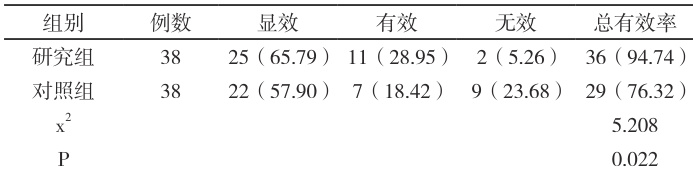 2.2 两组治疗效果比较见表2。