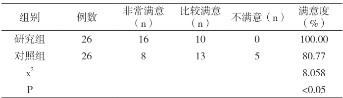 研究组护理满意度明显高于对照组( P<0.05 )。见表2。