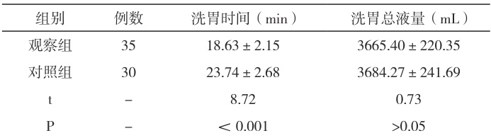 2.1 比较两组洗胃时间、洗胃总液量